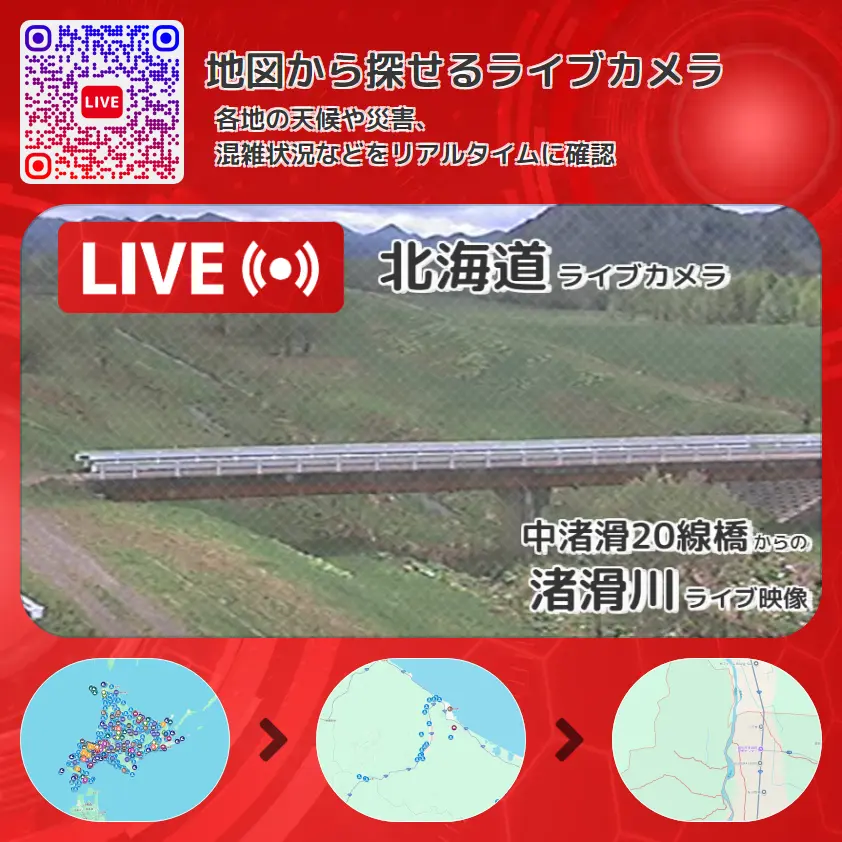 周辺の気象状況も併せてチェックすることが可能で、台風・大雨・地震などの災害による被害状況も把握することができます。