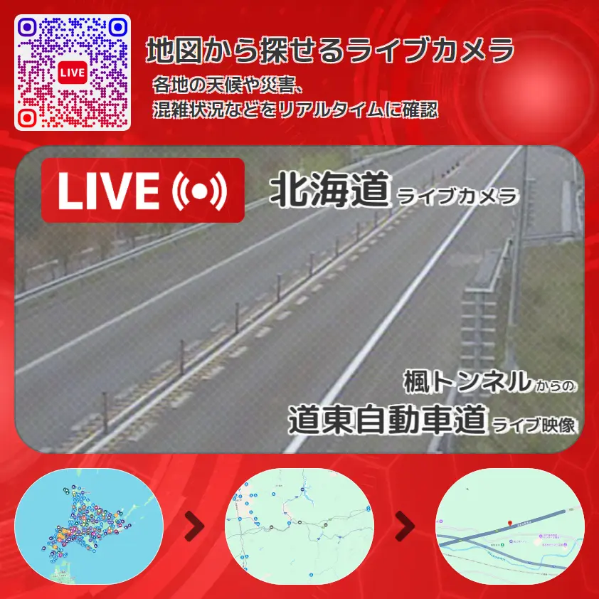 楓トンネルから、道東自動車道(道東道)が確認できるライブカメラです。