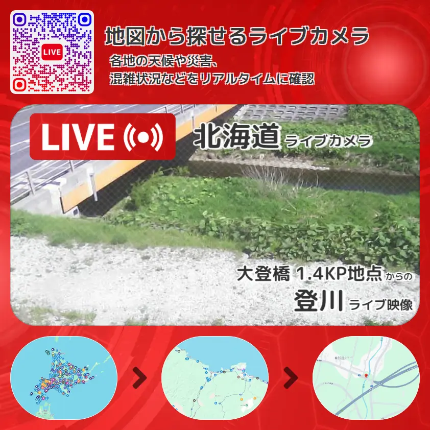 大登橋 1.4KP地点から、登川が確認できるライブカメラです。