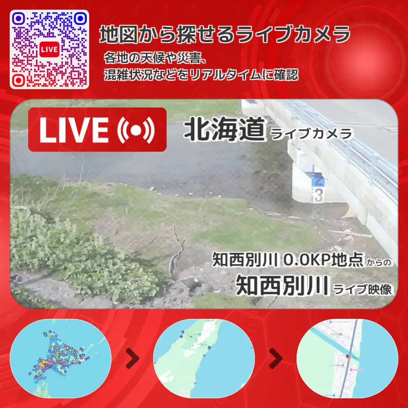 知西別川の他に、知西別橋や周辺の気象状況も併せてチェックすることが可能で、台風・大雨・地震などの災害による被害状況も把握することができます。