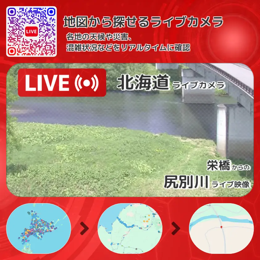 尻別川の他に、栄橋や周辺の気象状況も併せてチェックすることが可能で、台風・大雨・地震などの災害による被害状況も把握することができます。