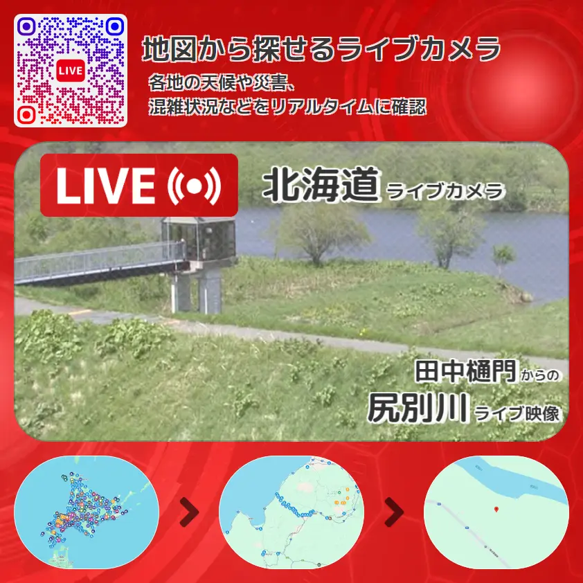 尻別川の他に、トンカラ沢川や周辺の気象状況も併せてチェックすることが可能で、台風・大雨・地震などの災害による被害状況も把握することができます。