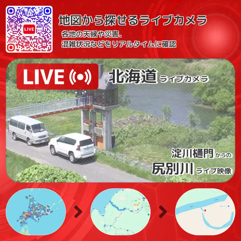 尻別川の他に、茅部川や周辺の気象状況も併せてチェックすることが可能で、台風・大雨・地震などの災害による被害状況も把握することができます。
