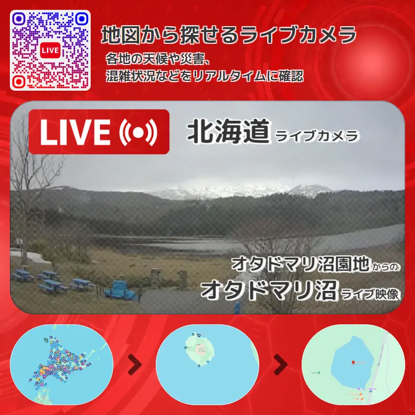 オタドマリ沼(オタドマリ沼)の他に、利尻山(利尻岳・利尻富士)や周辺の気象状況も併せてチェックすることが可能で、台風・大雨・地震などの災害による被害状況も把握することができます。