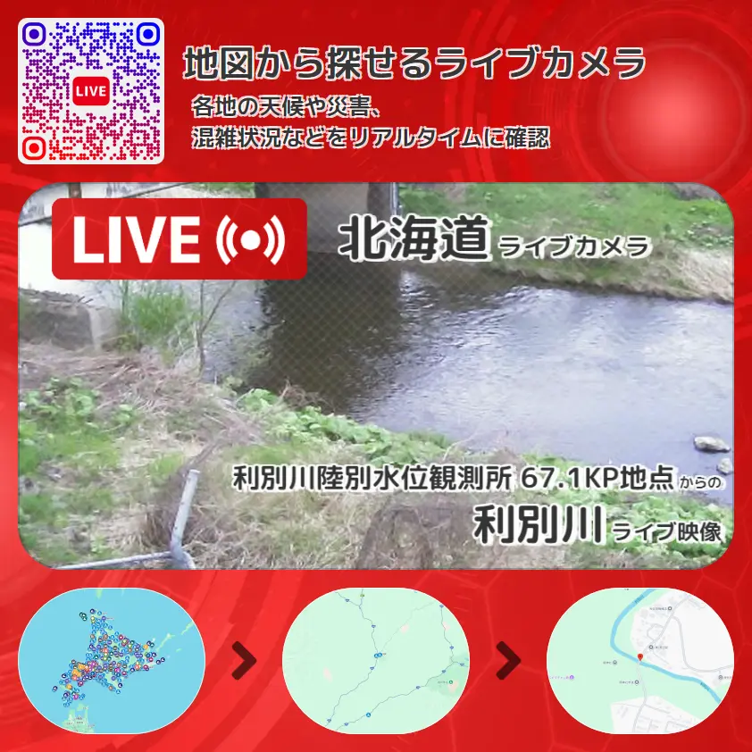 利別川の他に、陸別橋や周辺の気象状況も併せてチェックすることが可能で、台風・大雨・地震などの災害による被害状況も把握することができます。