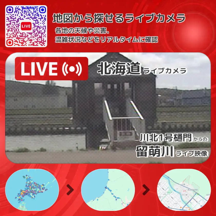 川北1号樋門から、留萌川が確認できるライブカメラです。