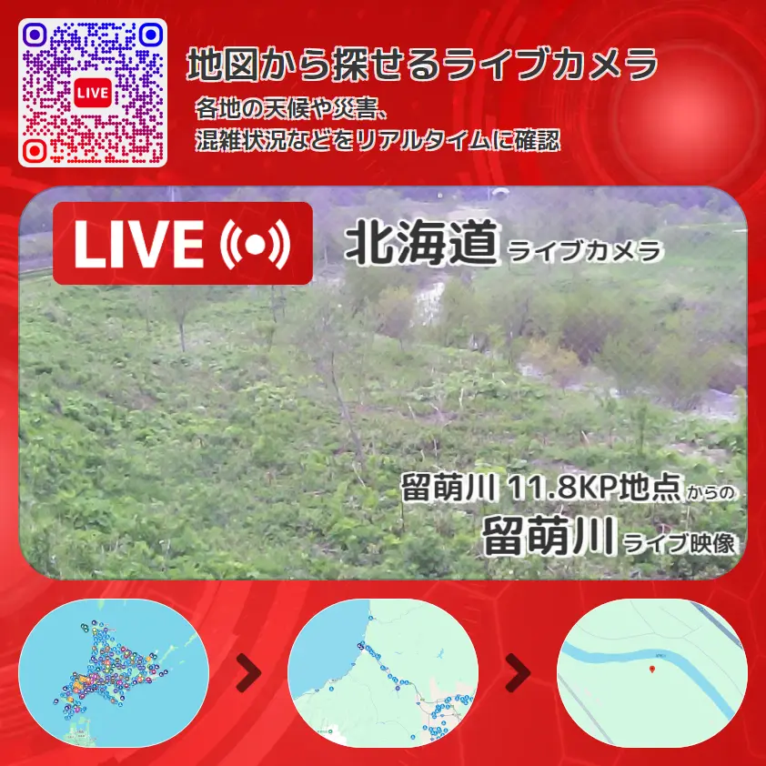留萌川 11.8KP地点から、留萌川が確認できるライブカメラです。