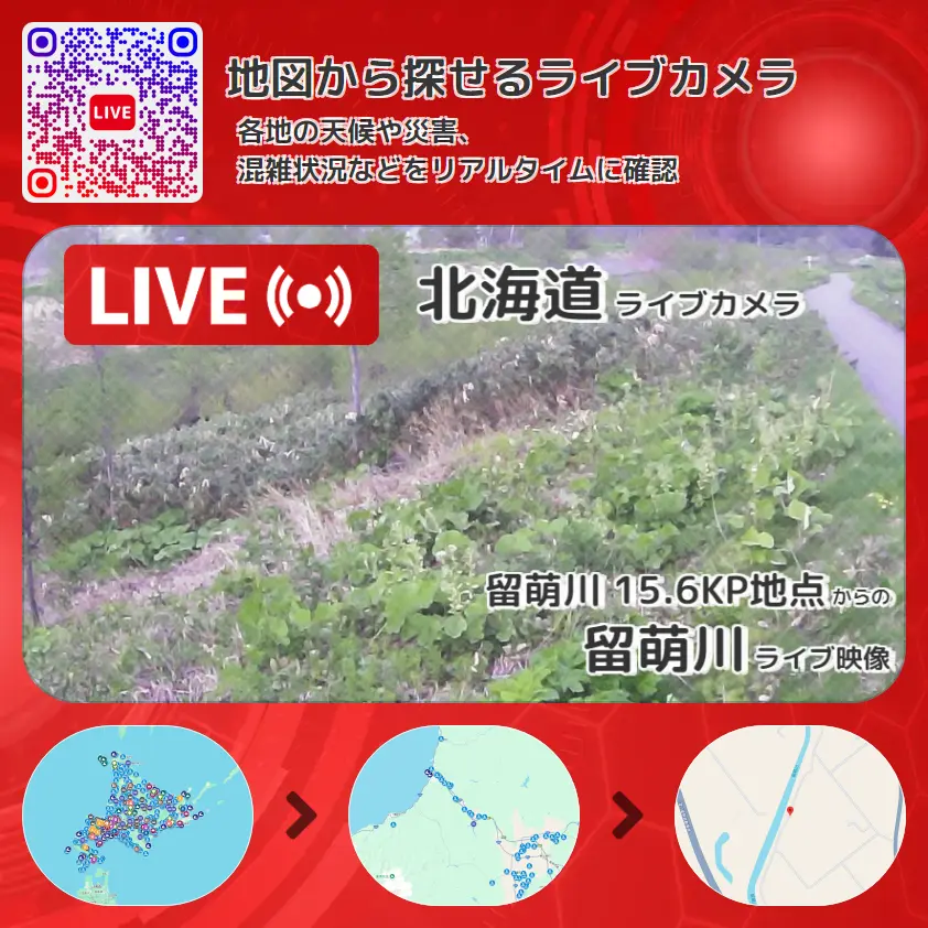 留萌川 15.6KP地点から、留萌川が確認できるライブカメラです。
