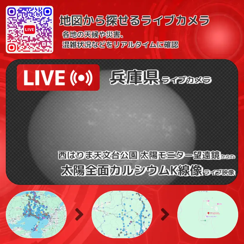 西はりま天文台公園 太陽モニター望遠鏡から、太陽全面カルシウムK線像が確認できるライブカメラです。