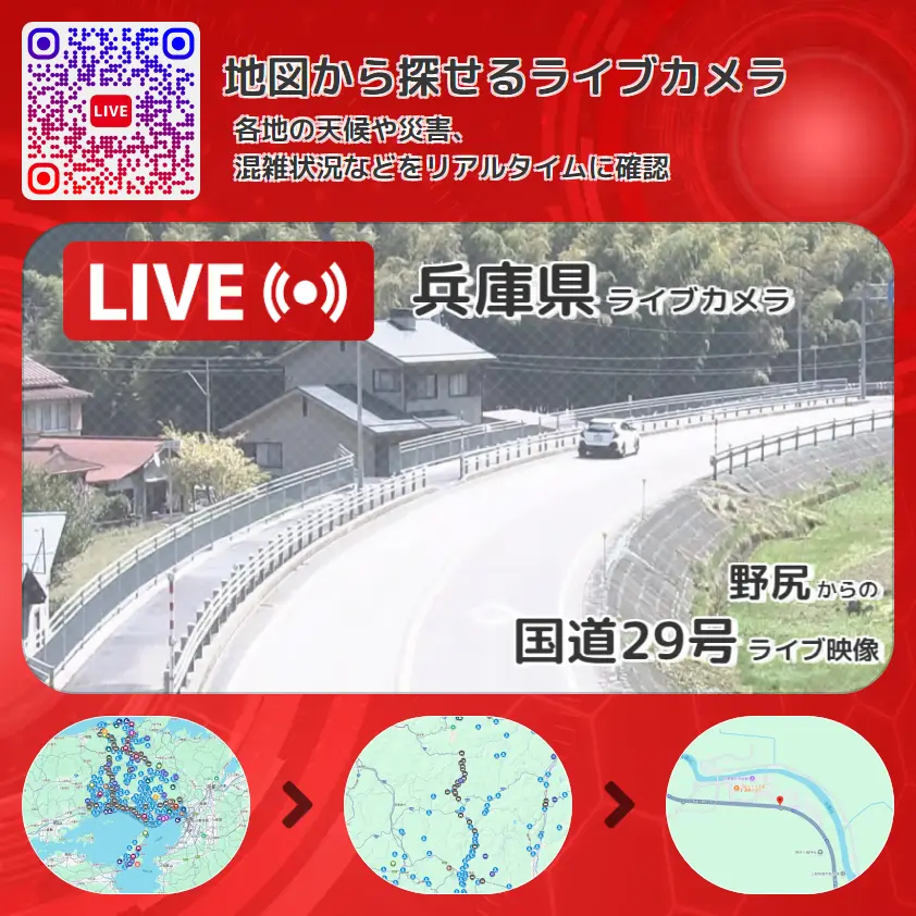 周辺の気象状況も併せてチェックすることが可能で、台風・大雨・地震などの災害による被害状況も把握することができます。