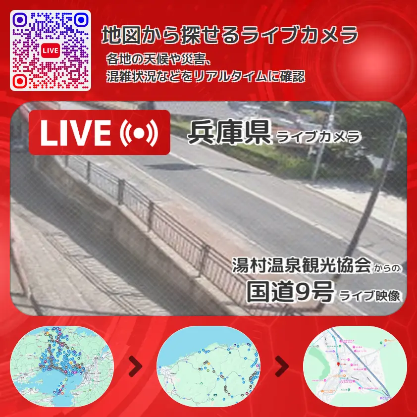 湯村温泉観光協会から、国道9号(大阪・神戸方面)が確認できるライブカメラです。