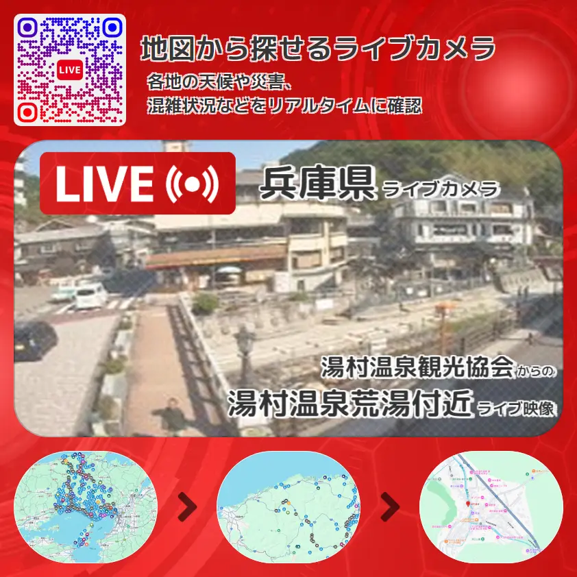 兵庫県 「湯村温泉荒湯付近」ライブ映像(湯村温泉観光協会 設置カメラ) ライブカメラ 監視カメラ