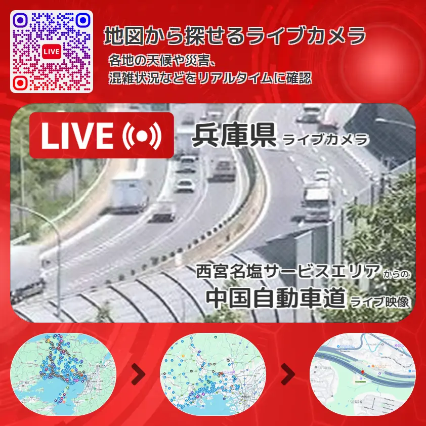 西宮名塩サービスエリア(西宮名塩SA)から、中国自動車道(中国道)が確認できるライブカメラです。