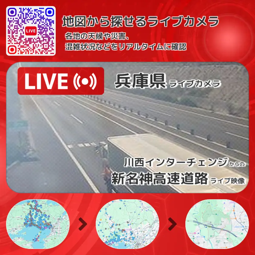 川西インターチェンジ(川西IC)~神戸ジャンクション(神戸JCT)から、新名神高速道路(新名神高速)が確認できるライブカメラです。