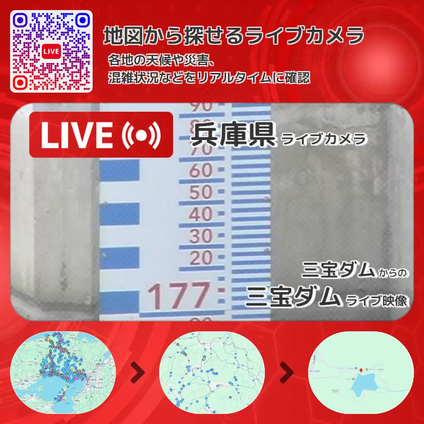 三宝ダムの他に、ダム湖や周辺の気象状況も併せてチェックすることが可能で、台風・大雨・地震などの災害による被害状況も把握することができます。