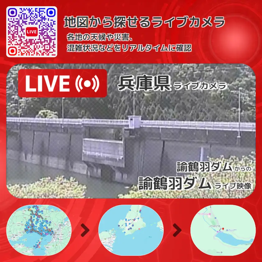 諭鶴羽ダムの他に、諭鶴羽川や周辺の気象状況も併せてチェックすることが可能で、台風・大雨・地震などの災害による被害状況も把握することができます。