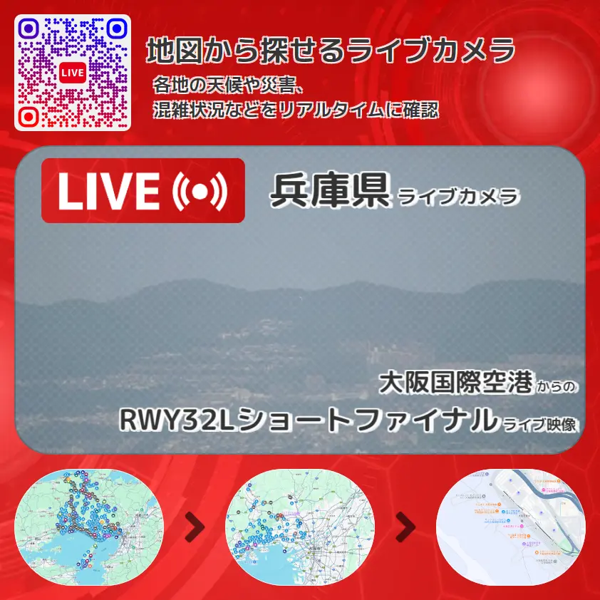 兵庫県 「RWY32Lショートファイナル」ライブ映像(大阪国際空港 設置カメラ) ライブカメラ 監視カメラ