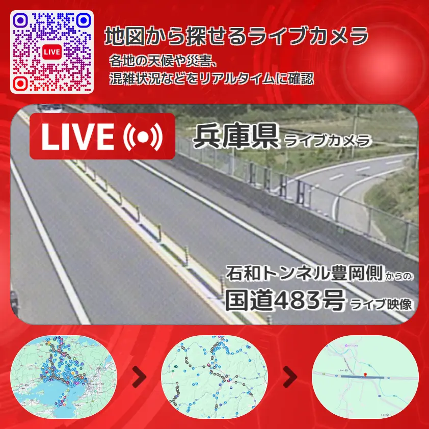 石和トンネル豊岡側から、国道483号(北近畿豊岡自動車道和田山八鹿道路)が確認できるライブカメラです。
