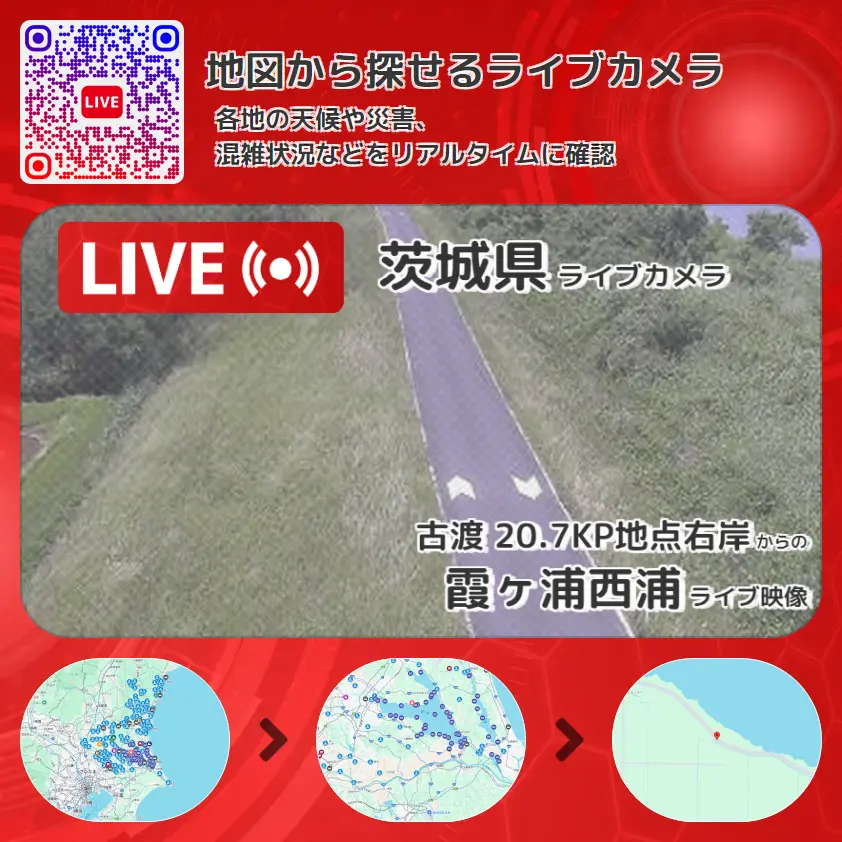 周辺の気象状況も併せてチェックすることが可能で、台風・大雨・地震などの災害による被害状況も把握することができます。