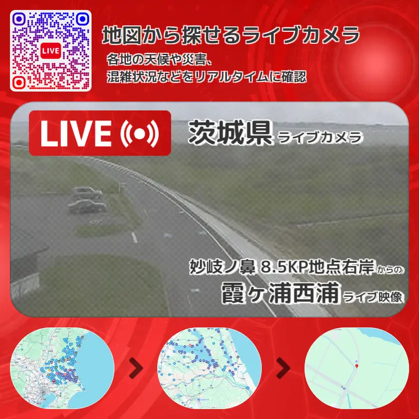 霞ヶ浦西浦(霞ケ浦・常陸利根川)の他に、妙岐ノ鼻(霞ヶ浦浮島湿原)や周辺の気象状況も併せてチェックすることが可能で、台風・大雨・地震などの災害による被害状況も把握することができます。