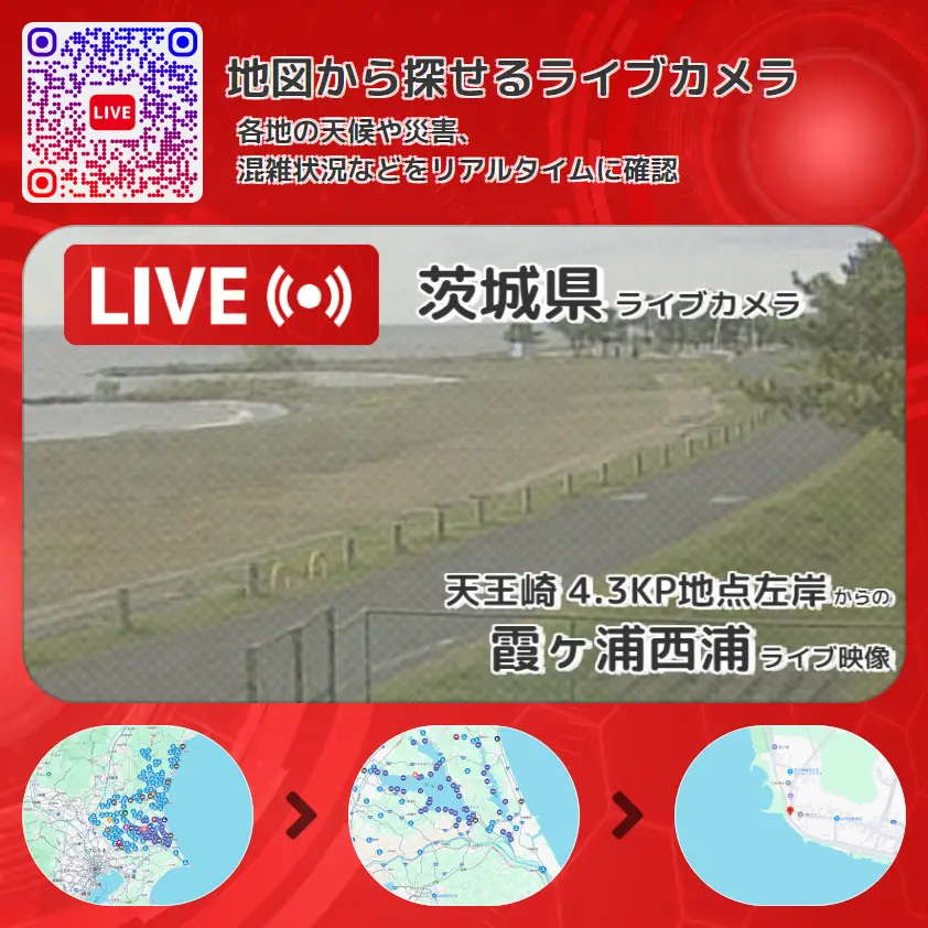 霞ヶ浦西浦(霞ケ浦・常陸利根川)の他に、天王崎公園や周辺の気象状況も併せてチェックすることが可能で、台風・大雨・地震などの災害による被害状況も把握することができます。