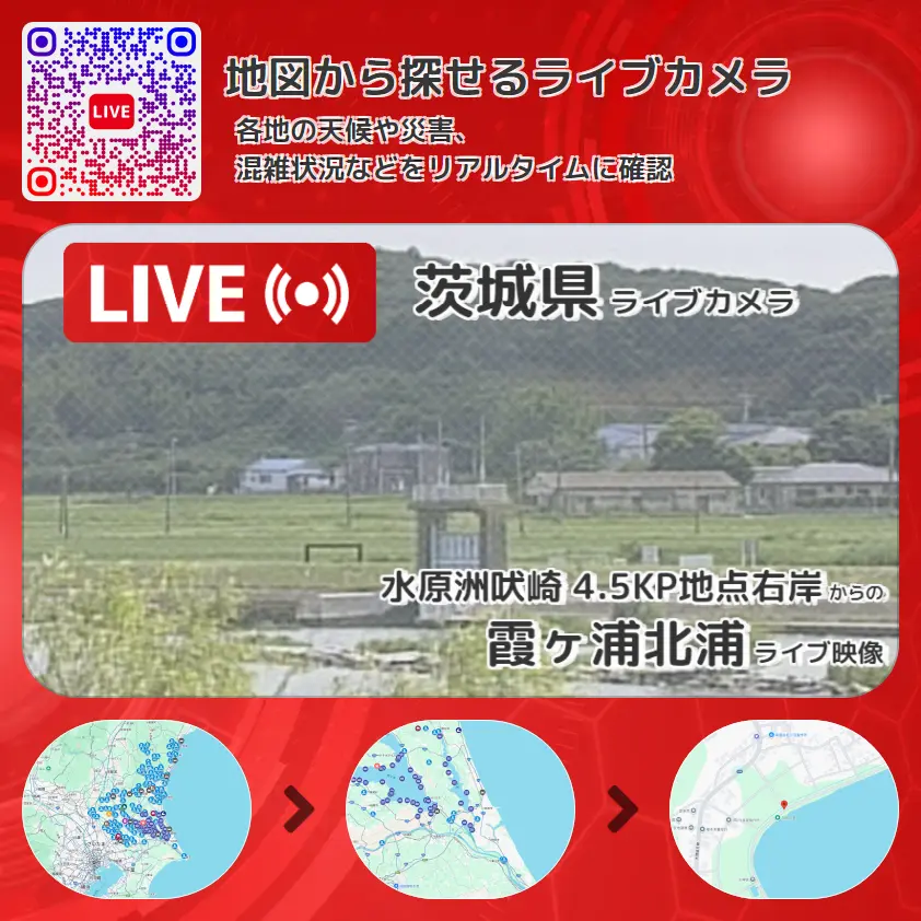 周辺の気象状況も併せてチェックすることが可能で、台風・大雨・地震などの災害による被害状況も把握することができます。
