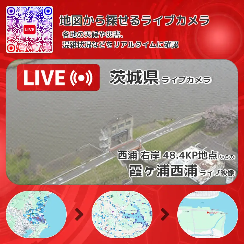 霞ヶ浦西浦(霞ケ浦・常陸利根川)の他に、桜川や周辺の気象状況も併せてチェックすることが可能で、台風・大雨・地震などの災害による被害状況も把握することができます。