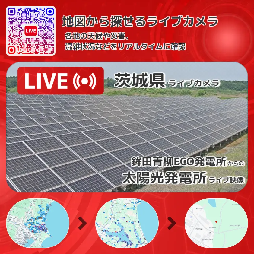 鉾田青柳ECO発電所から、太陽光発電所が確認できるライブカメラです。