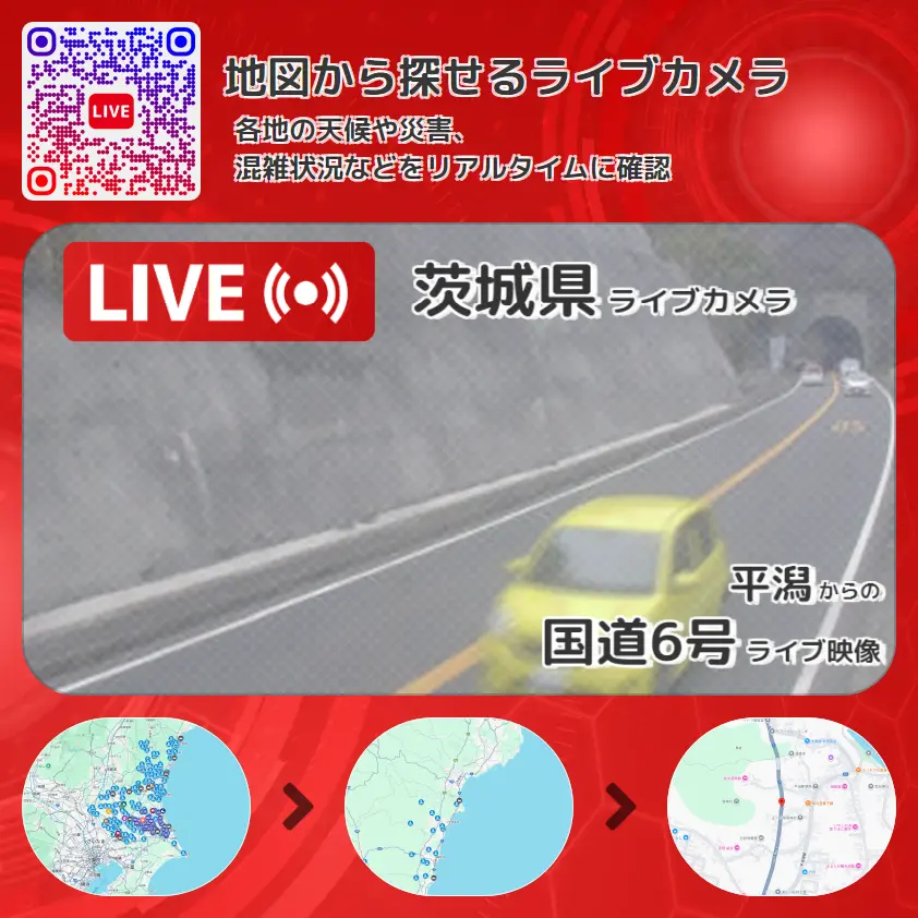 国道6号の他に、平潟隧道や周辺の気象状況も併せてチェックすることが可能で、台風・大雨・地震などの災害による被害状況も把握することができます。