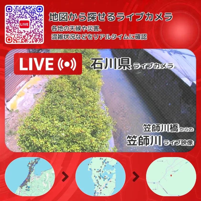 石川県 「笠師川」ライブ映像(笠師川橋 設置カメラ) ライブカメラ 監視カメラ