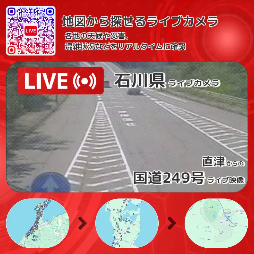 石川県 「国道249号」ライブ映像(直津 設置カメラ) ライブカメラ 監視カメラ