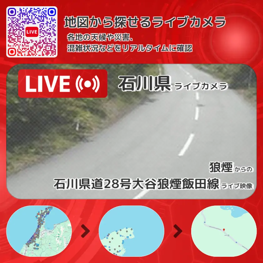 狼煙から、石川県道28号大谷狼煙飯田線(奥能登絶景海道)が確認できるライブカメラです。