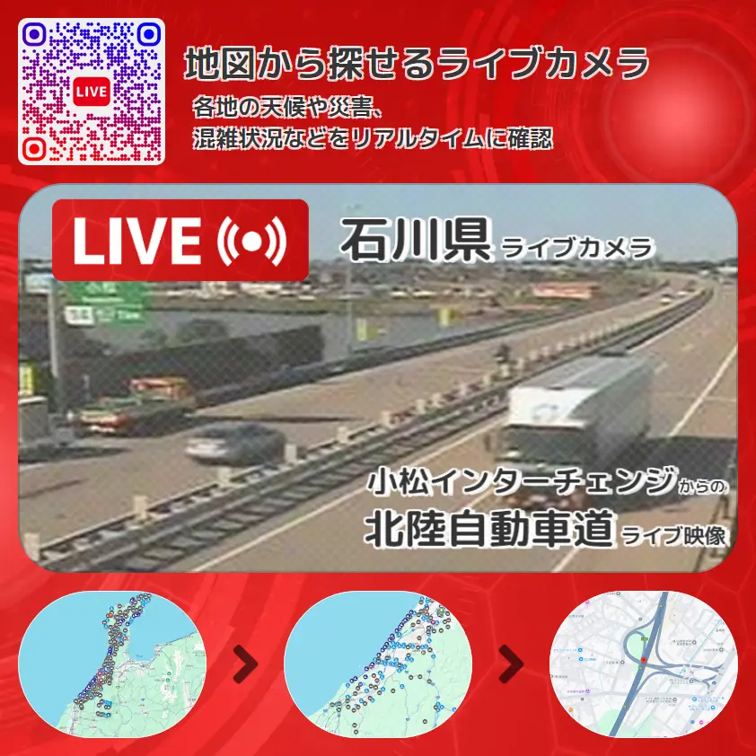 小松インターチェンジ(小松IC)から、北陸自動車道(北陸道)が確認できるライブカメラです。