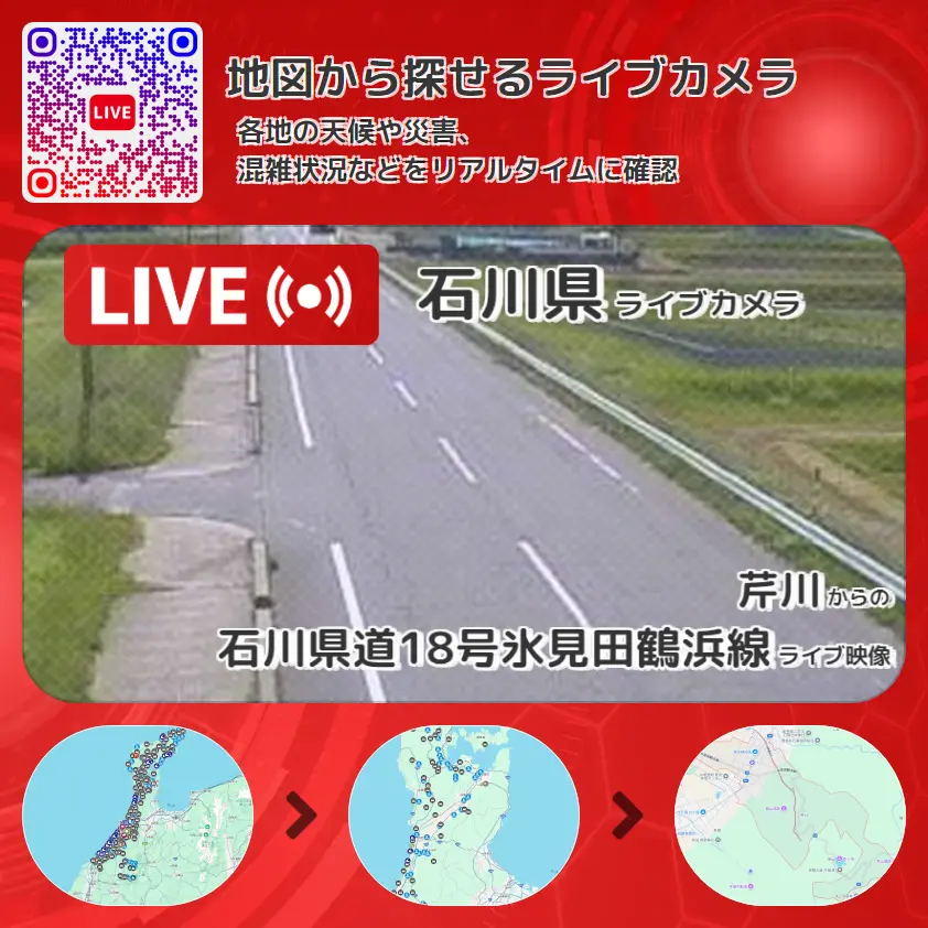 石川県 「石川県道18号氷見田鶴浜線」ライブ映像(芹川 設置カメラ) ライブカメラ 監視カメラ