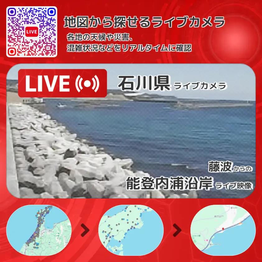 能登内浦沿岸の他に、国道249号や周辺の気象状況も併せてチェックすることが可能で、台風・大雨・地震などの災害による被害状況も把握することができます。