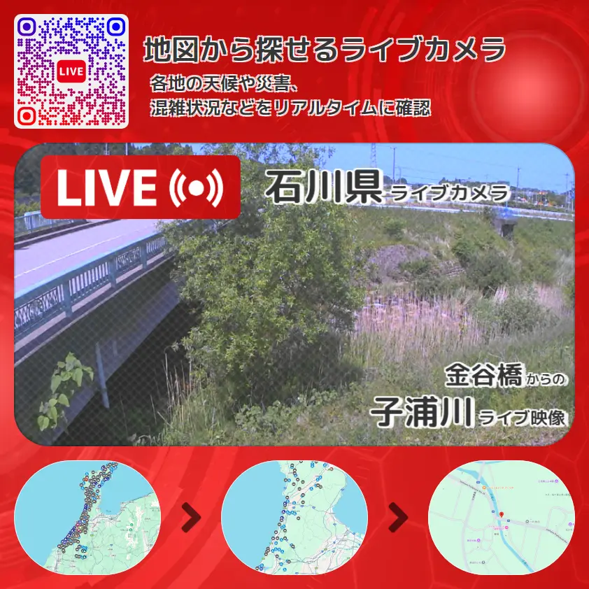 子浦川の他に、金谷橋や周辺の気象状況も併せてチェックすることが可能で、台風・大雨・地震などの災害による被害状況も把握することができます。