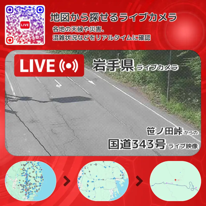 笹ノ田峠から、国道343号(陸前高田から大東方面)が確認できるライブカメラです。