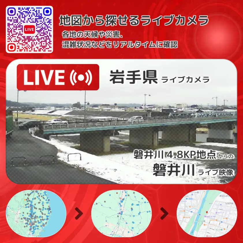 磐井川の他に、磐井橋や周辺の気象状況も併せてチェックすることが可能で、台風・大雨・地震などの災害による被害状況も把握することができます。