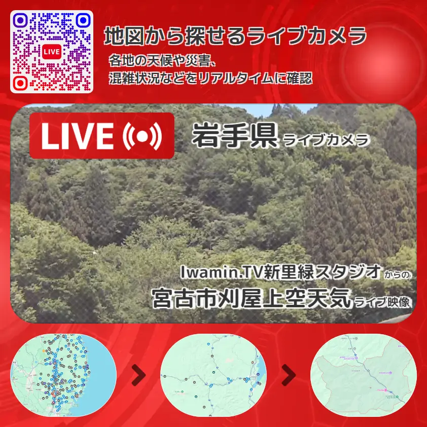 Iwamin.TV新里緑スタジオから、宮古市刈屋上空天気が確認できるライブカメラです。