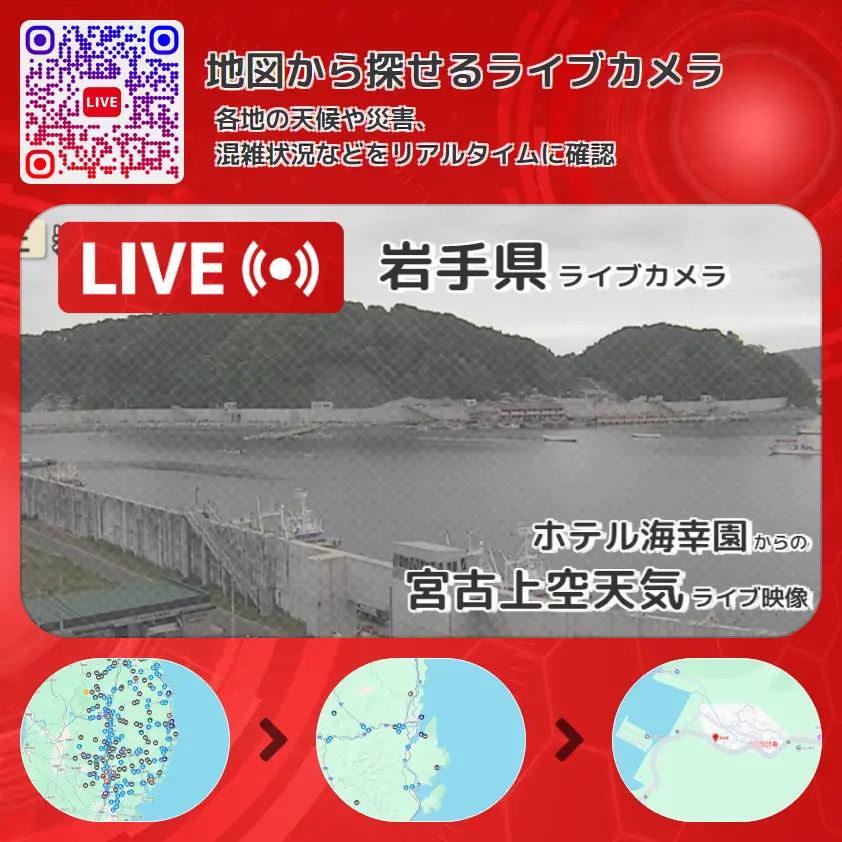 宮古上空天気の他に、宮古湾や周辺の気象状況も併せてチェックすることが可能で、台風・大雨・地震などの災害による被害状況も把握することができます。
