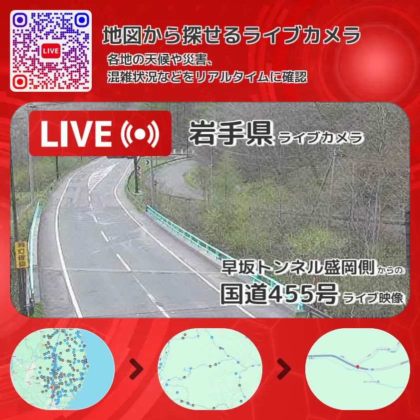 早坂トンネル盛岡側から、国道455号(岩泉から盛岡方面)が確認できるライブカメラです。