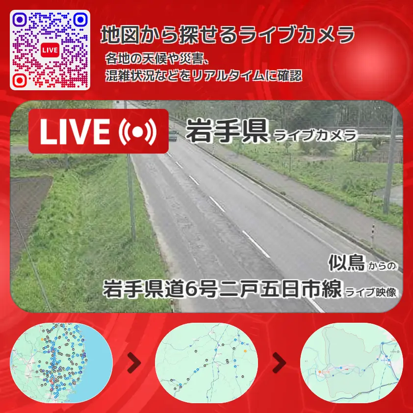似鳥から、岩手県道6号二戸五日市線が確認できるライブカメラです。