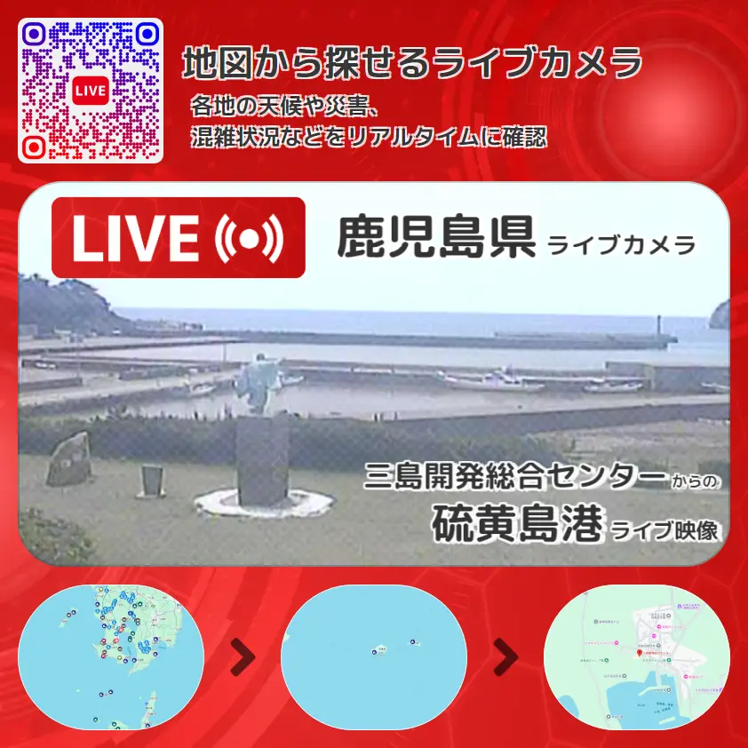 三島開発総合センターから、硫黄島港が確認できるライブカメラです。