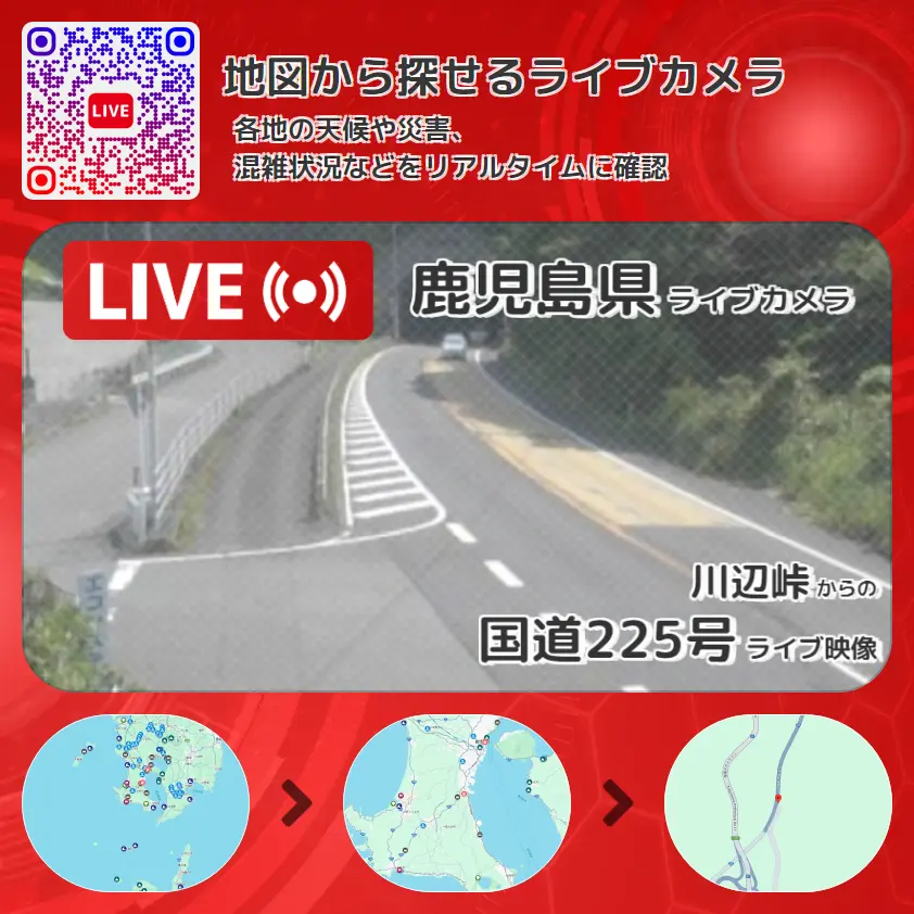 周辺の気象状況も併せてチェックすることが可能で、台風・大雨・地震などの災害による被害状況も把握することができます。