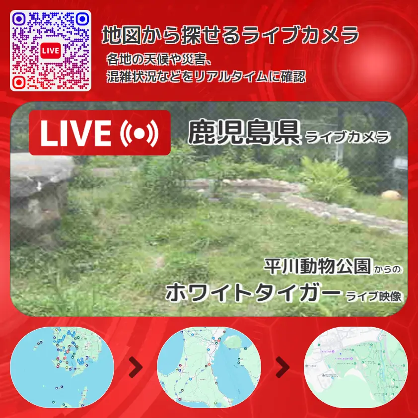 鹿児島県 「ホワイトタイガー」ライブ映像(平川動物公園 設置カメラ) ライブカメラ 監視カメラ