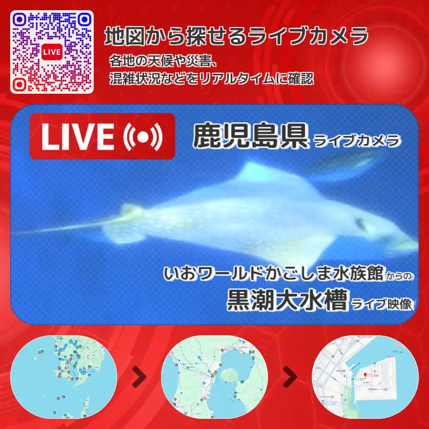 いおワールドかごしま水族館から、黒潮大水槽が確認できるライブカメラです。
