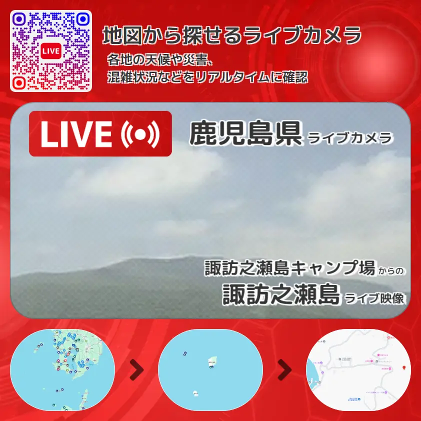 諏訪之瀬島キャンプ場から、諏訪之瀬島(御岳)が確認できるライブカメラです。