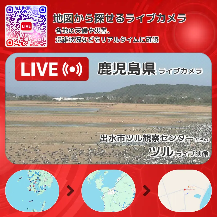 鹿児島県 「ツル」ライブ映像(出水市ツル観察センター 設置カメラ) ライブカメラ 監視カメラ