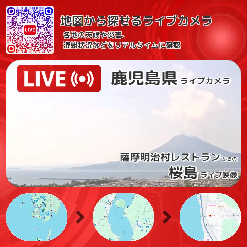 桜島の他に、鹿児島湾(錦江湾)や周辺の気象状況も併せてチェックすることが可能で、台風・大雨・地震などの災害による被害状況も把握することができます。