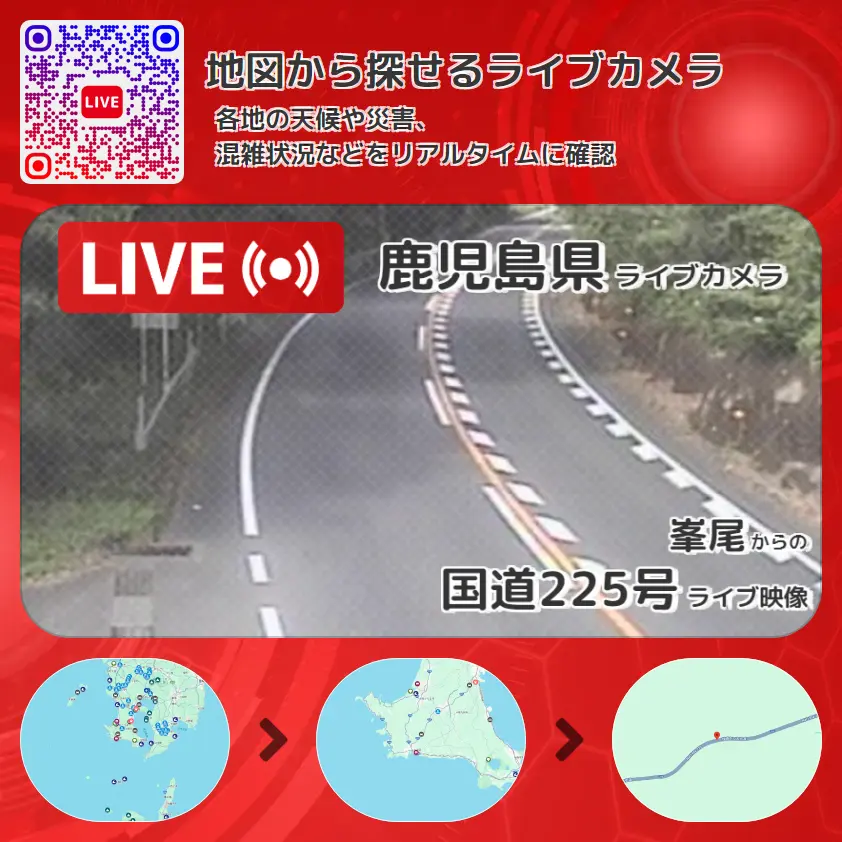 周辺の気象状況も併せてチェックすることが可能で、台風・大雨・地震などの災害による被害状況も把握することができます。